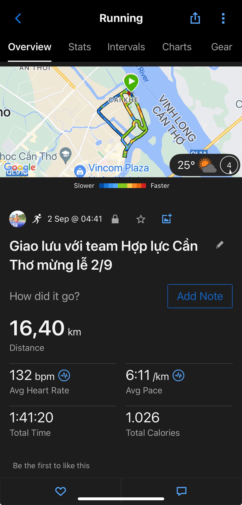 • Duy trì một tốc độ khá ổn định trong suốt quá trình chạy, với sự dao động pace trong khoảng từ 5:09 đến 6:53/km.