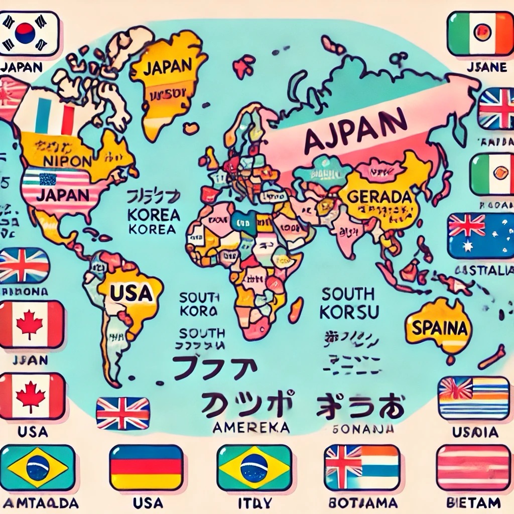 Dưới đây là tên các quốc gia bằng tiếng Nhật kèm theo phiên âm romaji: