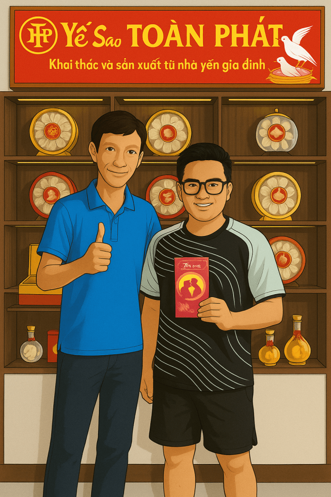 “Chào em Toàn nha! Dạo này Yến Sào Toàn Phát chắc đông khách lắm hén? Anh thấy nhiều bạn khen yến nhà em chất lượng lắm luôn!”