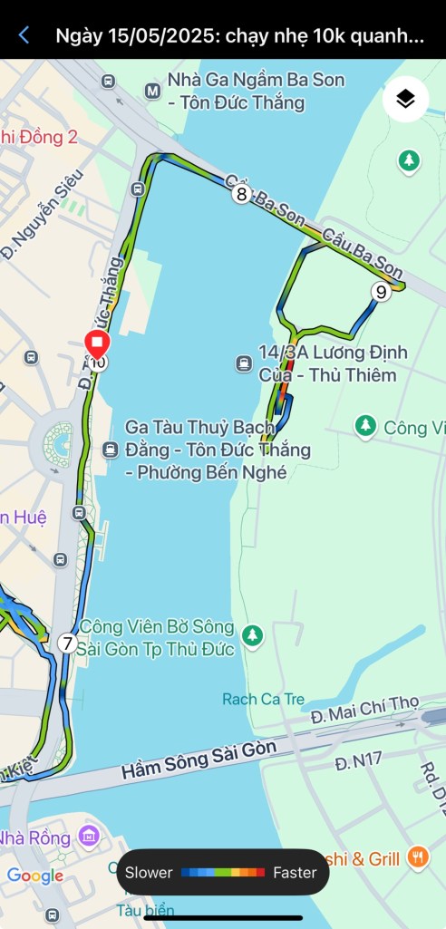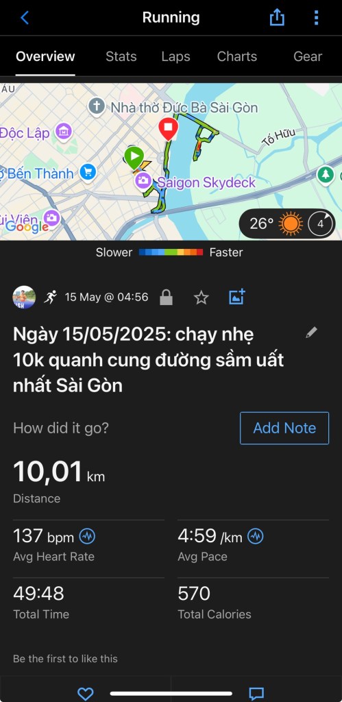 Sáng nay, Khoa chạy 🏃 nhẹ 10km quanh cung đường sầm uất nhất Sài Gòn – qua Nhà thờ Đức Bà, Bitexco, Bến Bạch Đằng…
