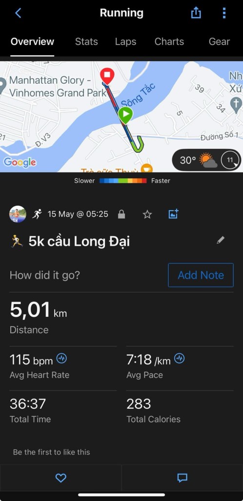Cách đây đúng 1 năm, cũng ngày 📆 này 👋 – 15/05/2024 – Khoa đã bắt đầu chạy 🏃 5km qua cầu Long Đại, cây cầu vừa khánh thành phá thế ngăn đôi TP Thủ Đức.