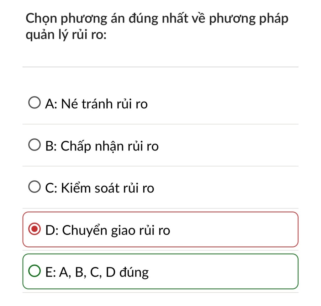 Đáp án đúng: A. Né tránh rủi ro