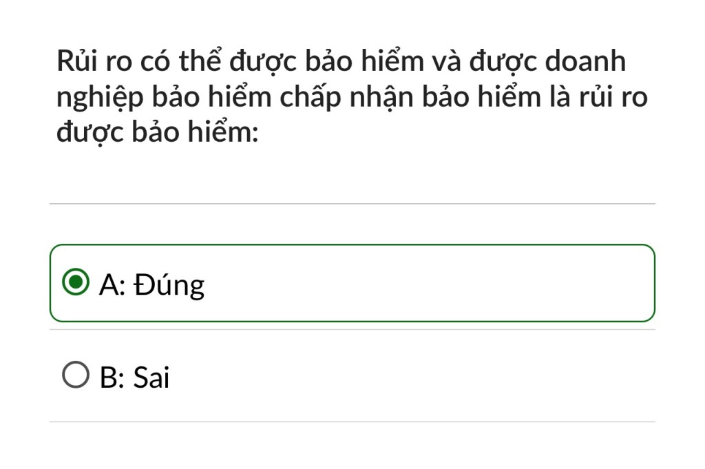 Đáp án đúng: C. Rủi ro được bảo hiểm phải là rủi ro bất ngờ, không lường trước được