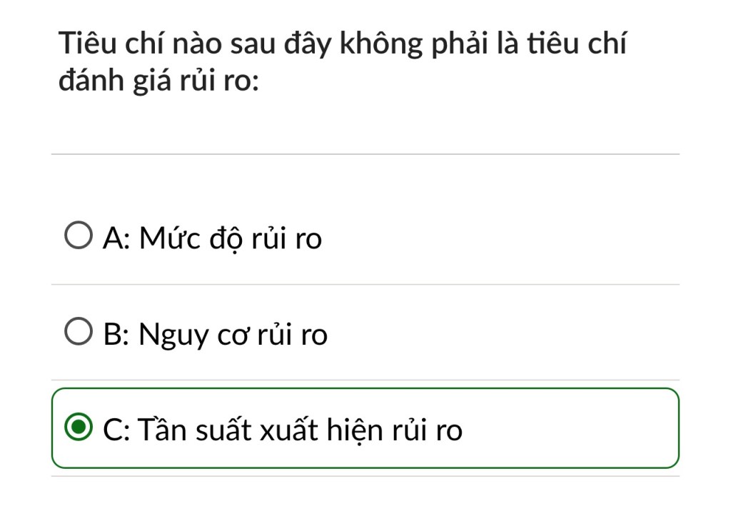 Đáp án đúng: B. Mức độ rủi ro và nguy cơ rủi ro