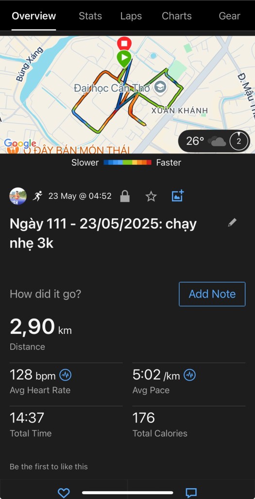 ⚡ Pace trung bình: 5:02/km (nhẹ nhàng, đều đặn)