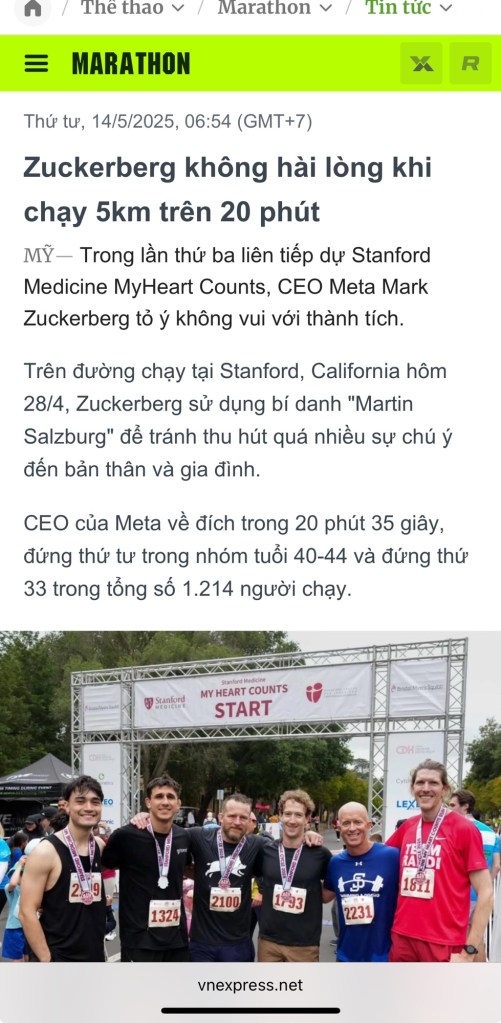 ⏰ 4:54 sáng, Khoa bắt đầu thử thách: Chạy 🏃 5km dưới 20 phút – một mốc thời gian mà cả CEO Meta Mark Zuckerberg cũng đang theo đuổi 🏃♂️📉.