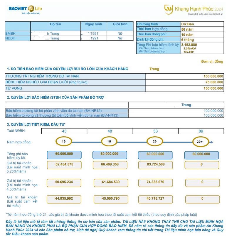 👩💼 Người được bảo hiểm: Trang – sinh năm 1991