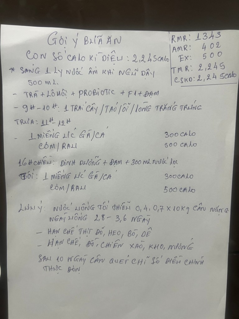 - 🔥 Chuyển hóa cơ bản (RMR): 1343 kcal