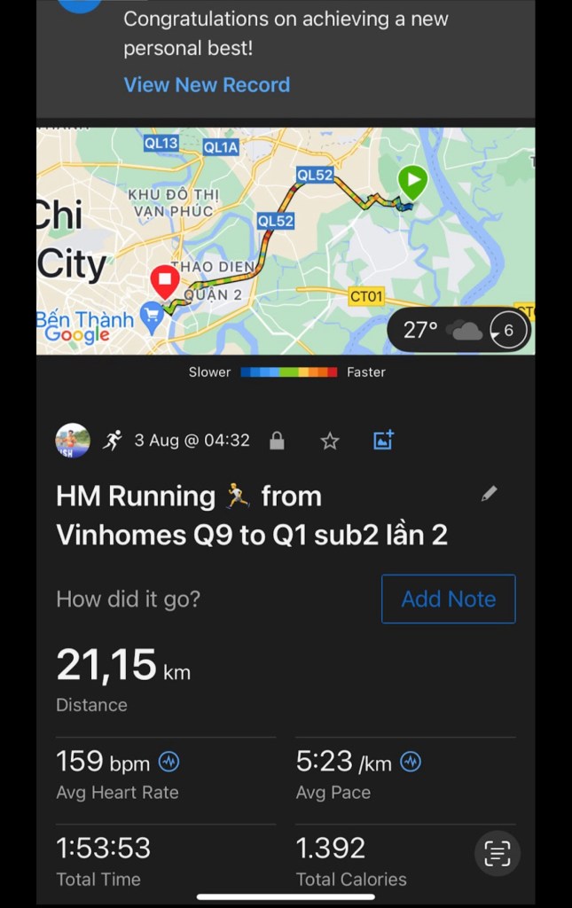 📍 🏁 Sub2 Half Marathon – Vinhomes Q9 đến Thảo Cầm Viên Quận 1 – lần 2