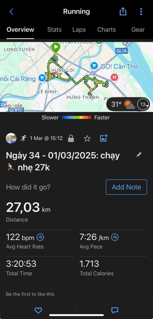 📍 Long run 27km chill quanh Cần Thơ ngày 01/03