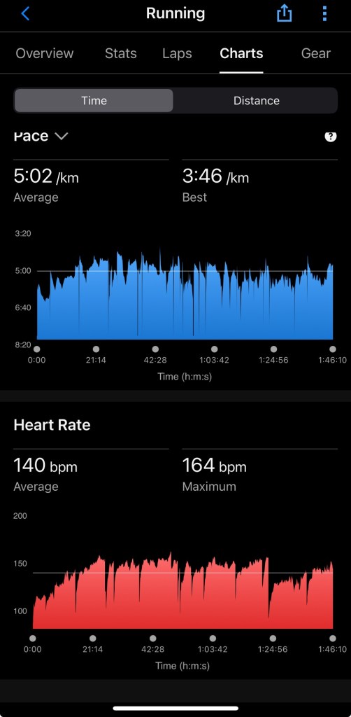 🏃♂️ HM sub2 – 21.11km | Avg Pace: 5:02/km | ⏱️ 1:46:09 | 🔥 1263 kcal