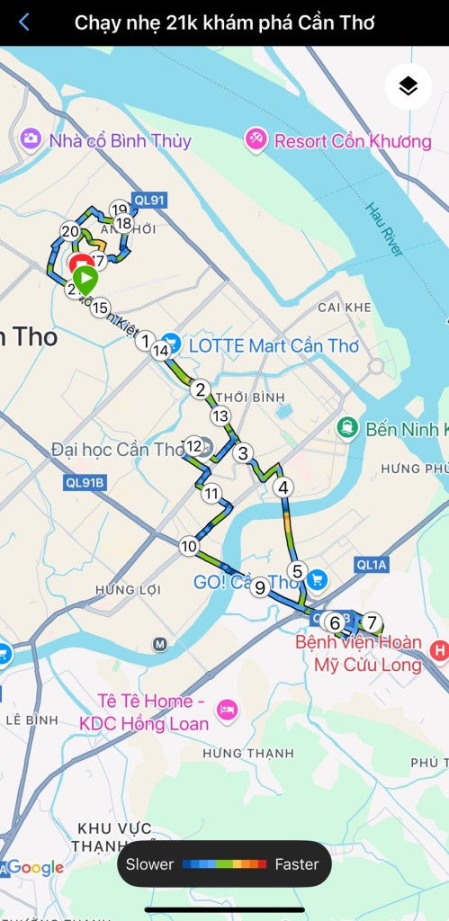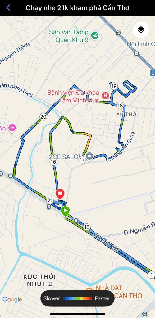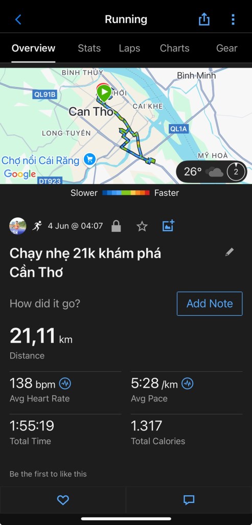 📍 Chạy nhẹ 21km lúc 4h sáng – ⏱️ 1h55’ – ❤️ 138bpm – ⚡ Pace 5:28/km