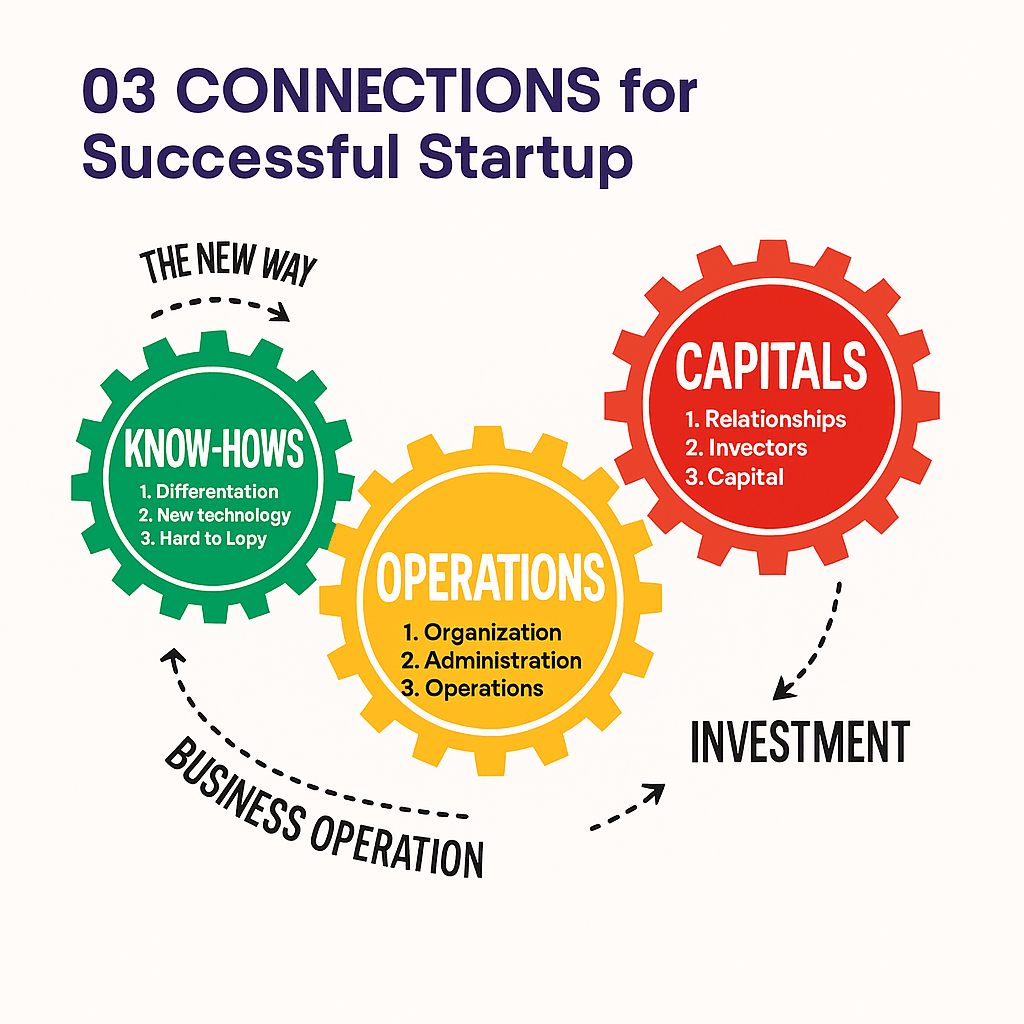 👉 Đây là 3 bánh răng ⚙️ vận hành song song – kết nối chặt chẽ để startup phát triển bền vững 🚀