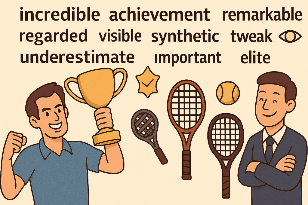 Có 1️⃣ tay vợt tên là Murray – anh ta đạt được một incredible (đáng kinh ngạc) achievement (thành tựu) khi đánh bại hàng loạt đối thủ elite (tinh hoa) như Nadal và Federer để vươn lên số 1 thế giới. 🏆