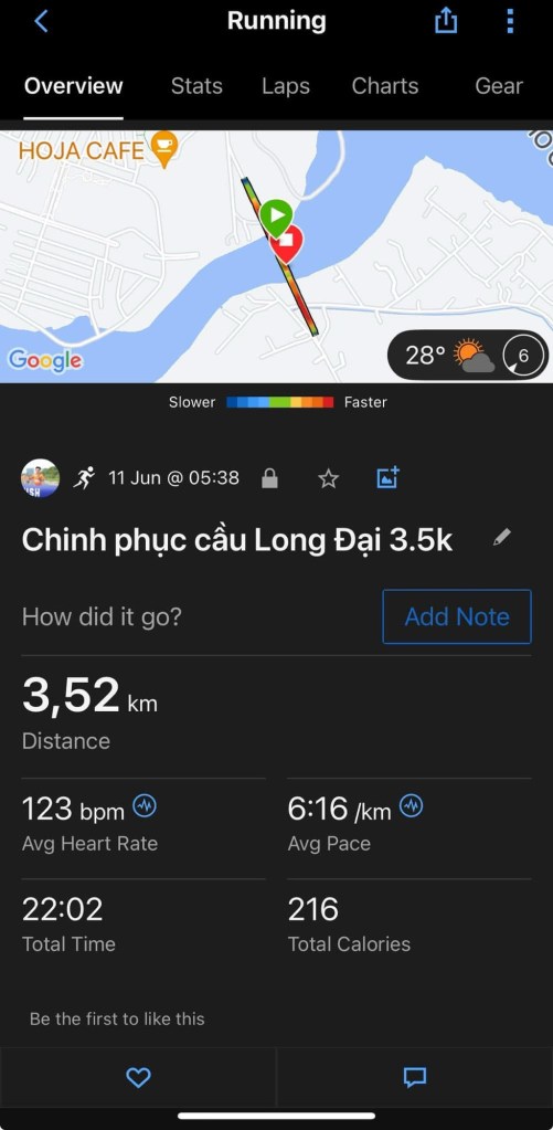 💭 Nhớ lại đúng ngày này năm ngoái, Khoa từng chạy bộ 🏃 chinh phục cầu Long Đại 🏃 — cây cầu nối liền phường Long Bình và Long Phước (TP Thủ Đức). Hồi đó hăng quá, tập nặng rồi đổ bệnh 🤒. Giờ mới thấm rằng tập luyện 🏋️ cũng phải vừa sức, biết lắng nghe cơ thể và giữ sự bền bỉ lâu dài.