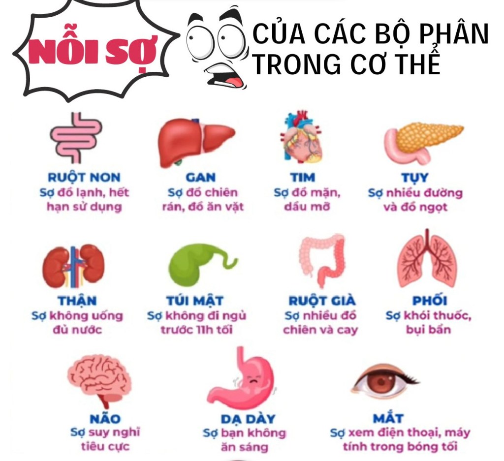Mỗi cơ quan đều có “nỗi sợ” riêng, và cách chúng ta ăn, 🥣 ngủ, 😴 vận động và suy nghĩ mỗi ngày chính là chìa khóa 🔑 để nuôi dưỡng từng bộ phận ấy.