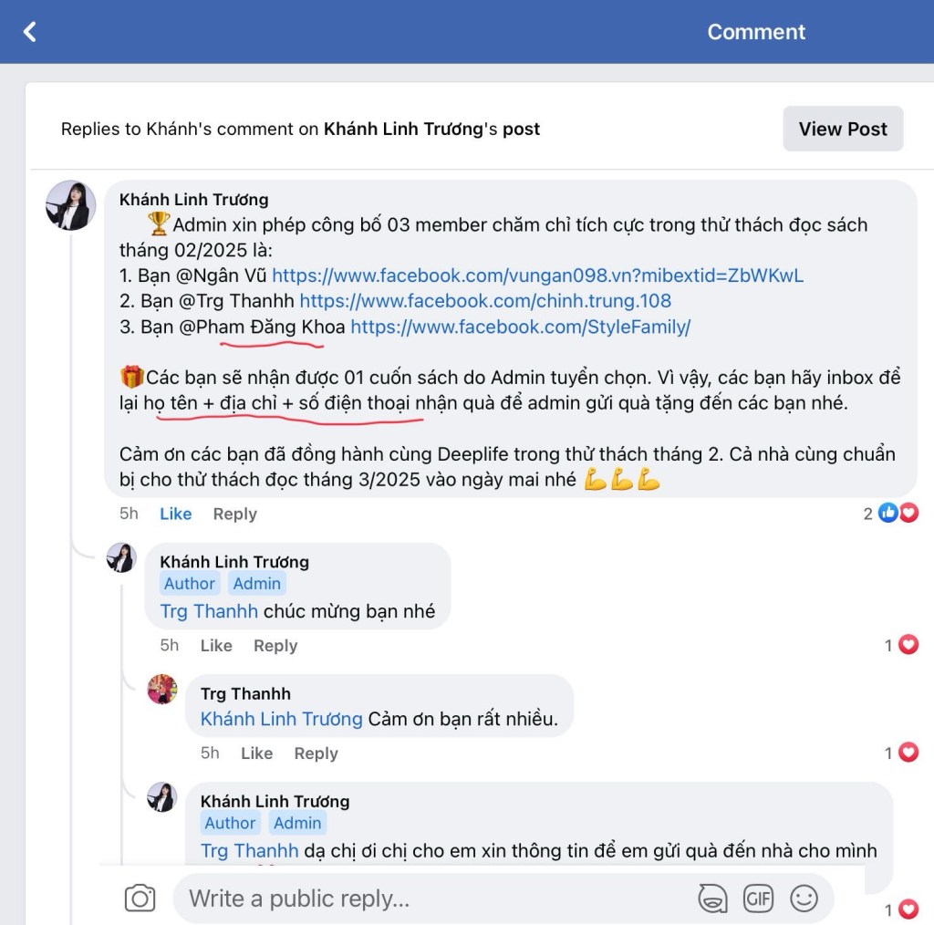 🏆 Hai lần đạt giải thành viên tích cực nhất trong thử thách 21 ngày đọc sách (6–7/2024 & 2/2025)
