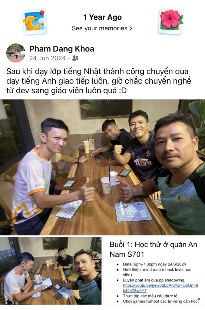 Từ một buổi tối ngồi chia sẻ phát âm shadowing và sơ đồ tư duy cùng anh em tại quán cà phê 🍵, Khoa đã:
