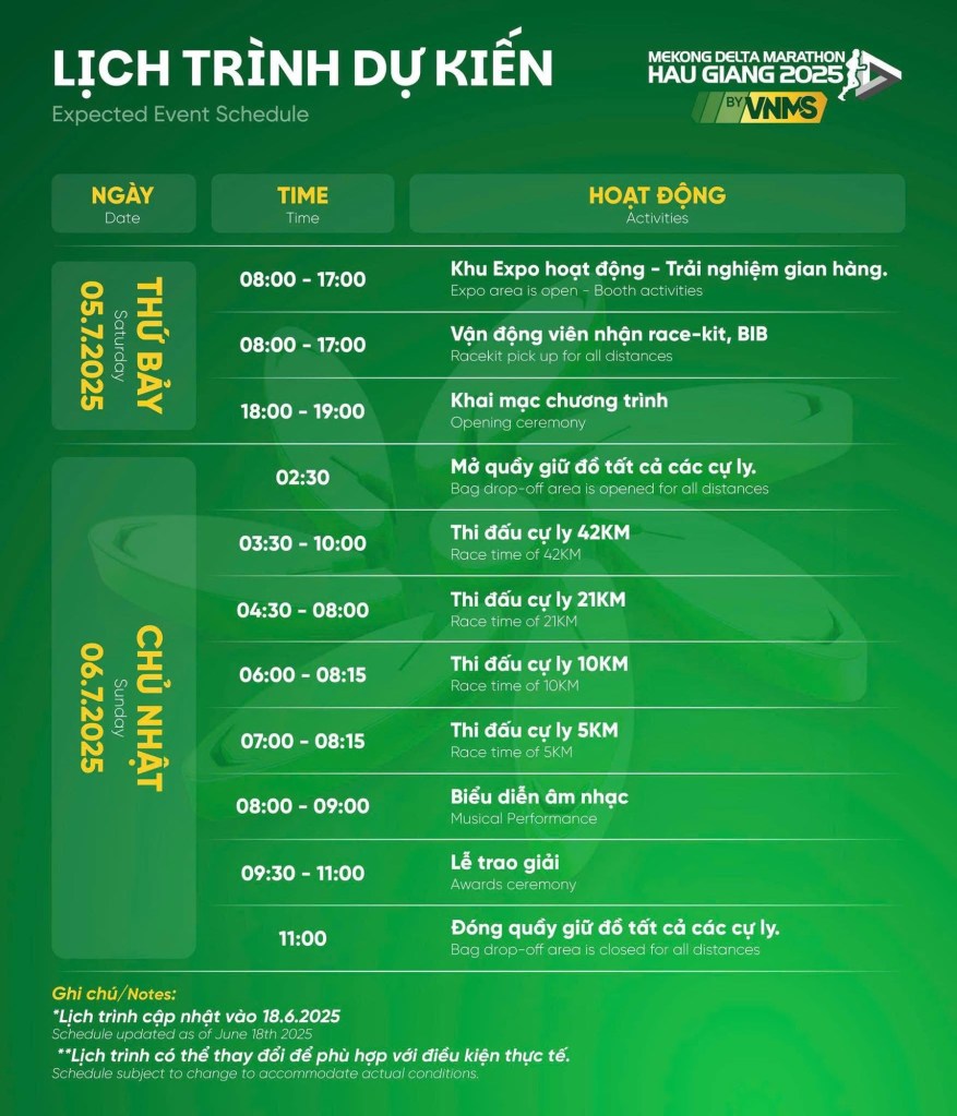 🌩️ Trời có thể mưa giông liên tục từ 4h đến 10h sáng, với xác suất mưa 40%–70%, nhưng điều đó không thể ngăn được bước chân của những chiến binh Mekong Delta Marathon!