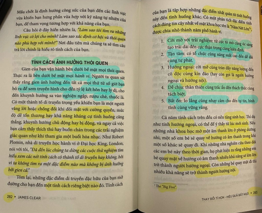 💡 Tình cờ sáng nay, Khoa đọc đến trang 282–285 của sách Atomic Habits – Thay đổi tí hon, hiệu quả bất ngờ (James Clear), nói về tính cách và thói quen – một phần rất hay giúp Khoa suy ngẫm lại về hành trình học 📚 và dạy của mình.