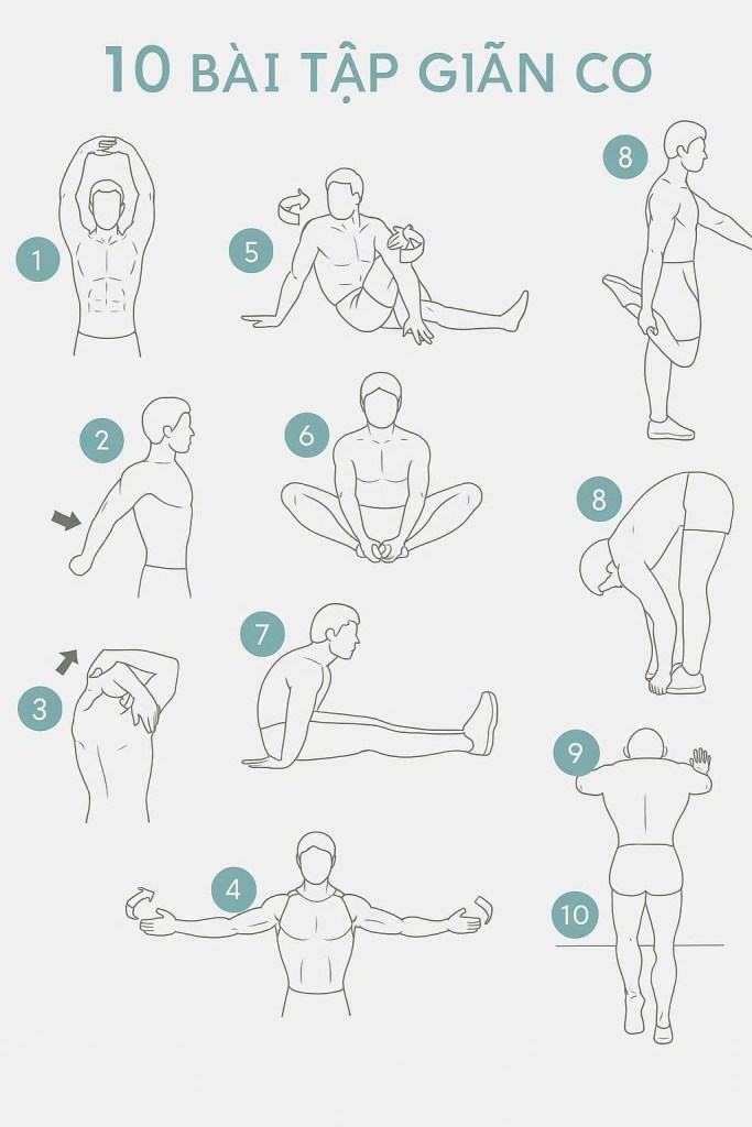 Sau khi chạy hoặc vận động mạnh, đừng quên giãn cơ! Việc này giúp giảm đau nhức, tăng độ linh hoạt và phòng tránh chấn thương. Dưới đây là 10 động tác đơn giản bạn có thể thực hiện ở bất kỳ đâu 👇👇