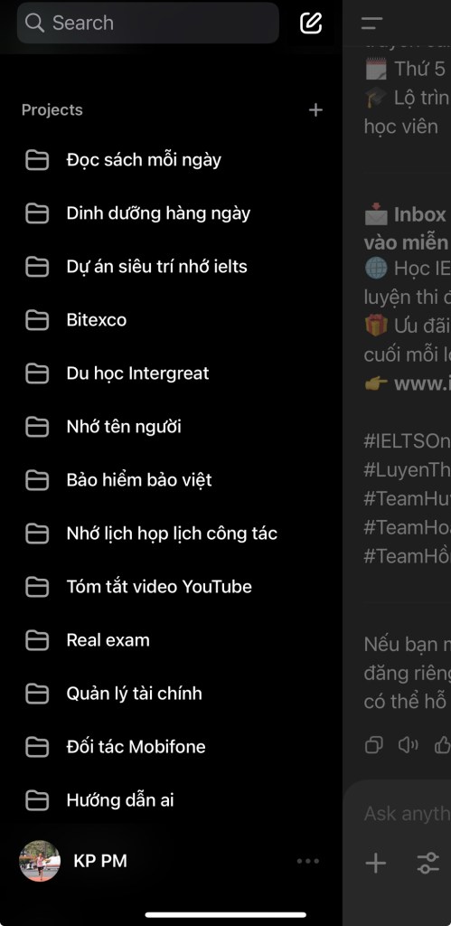 📸 Khoa hiện đang ứng dụng Projects để theo dõi hơn 10 mục tiêu 🎯 cùng lúc: