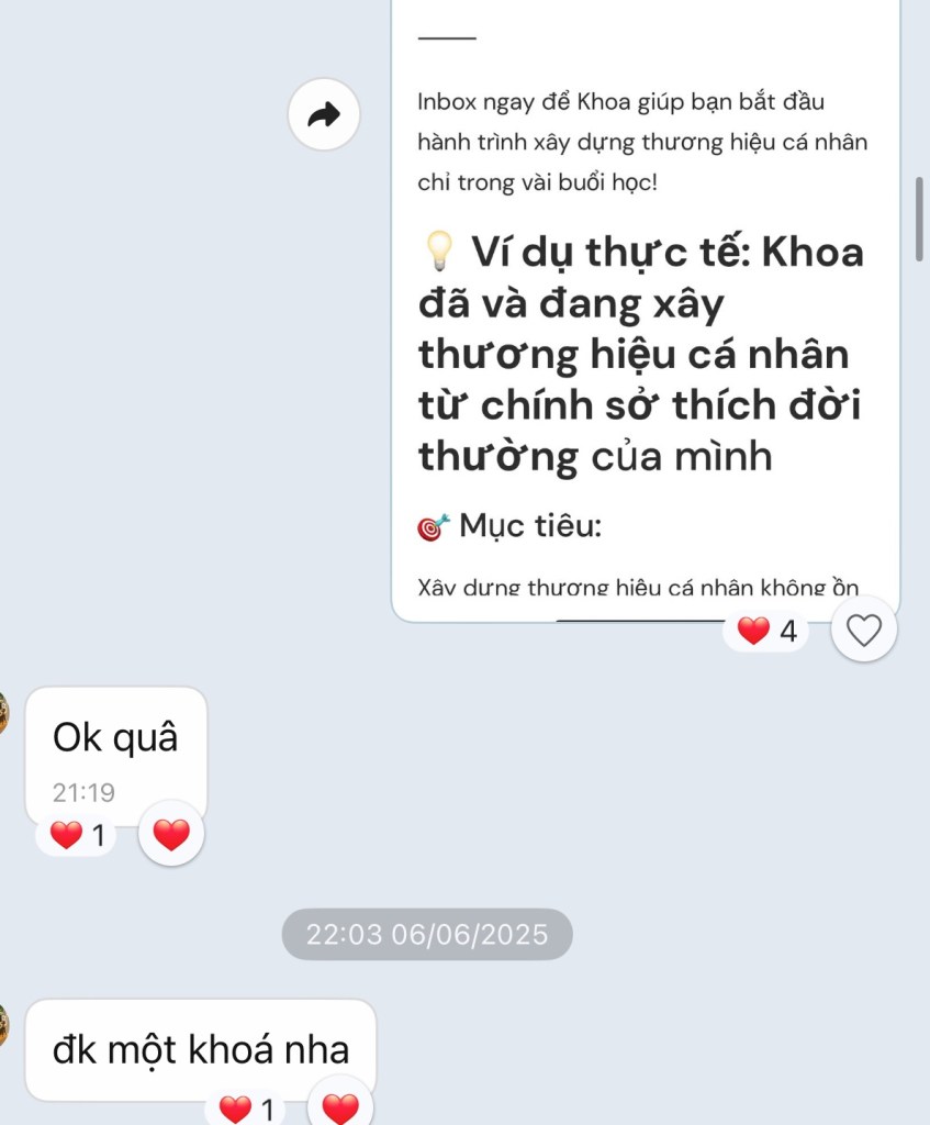Khoa đang mở các lớp nhỏ 1:1 và nhóm riêng (20 ngày ứng dụng AI thực chiến) 👇