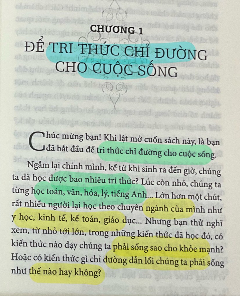 Chương 1 nhấn mạnh rằng tri thức đúng đắn chính là kim chỉ nam 🧭 cho cuộc sống khỏe mạnh, an toàn, vui vẻ. Tác giả đặt câu hỏi: 🙋 Chúng ta học rất nhiều môn như Toán, Văn, Hóa… nhưng có ai dạy ta cách sống khỏe mạnh 💪 không?