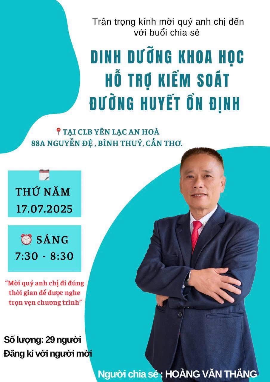 📍 Địa điểm: CLB Yên Lạc An Hòa – 88A Nguyễn Đệ, Bình Thủy, Cần Thơ