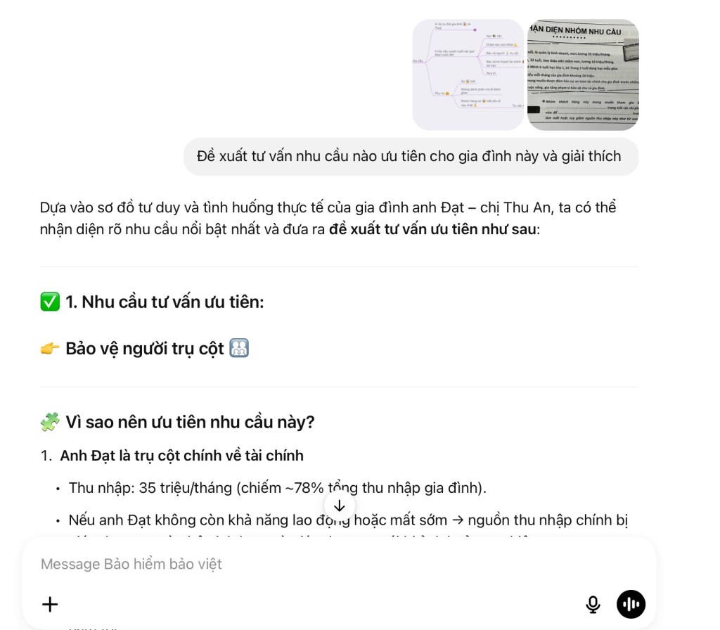 ✅ Cá nhân hóa sản phẩm bảo hiểm theo: độ tuổi, thu nhập, vai trò trụ cột, số con nhỏ, mục tiêu 🎯 tương lai…