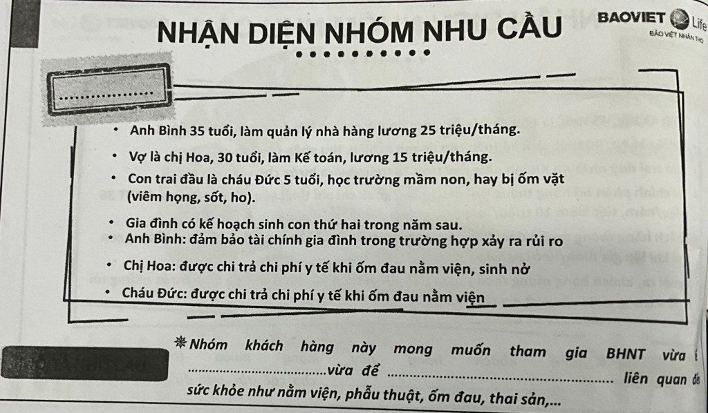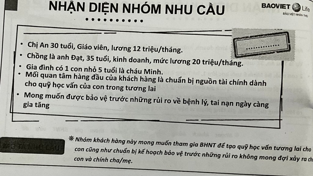 • Mong muốn: tạo quỹ học vấn cho con, bảo vệ gia đình trước bệnh lý, tai nạn - Nhu cầu ưu tiên: