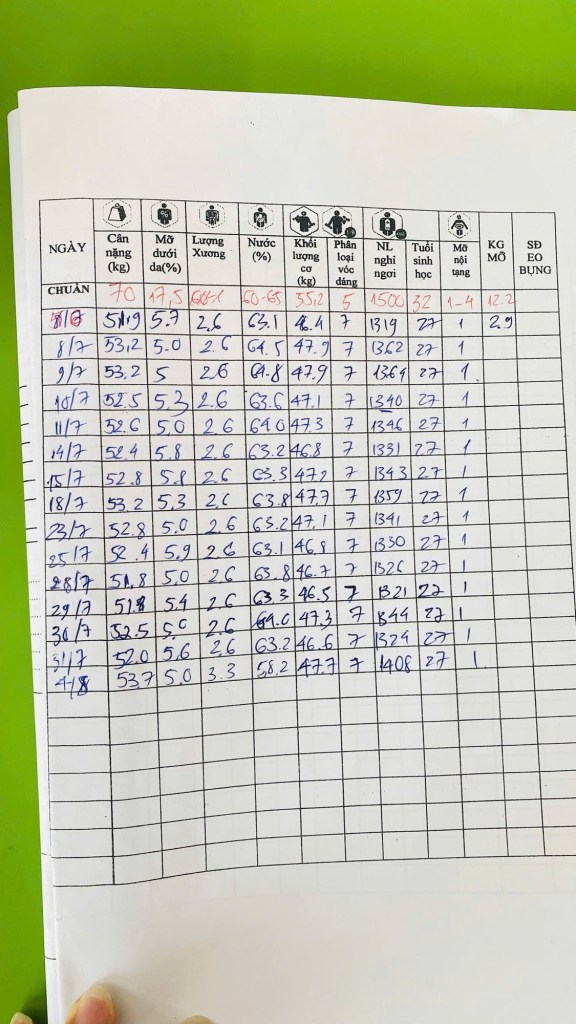 • ⚖️ Cân nặng: 51.9 → 53.7 kg ⬆️