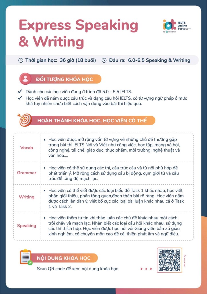 💥 Tham gia ngay lớp Express Speaking & Writing của IeltsOnlineTests – chương trình chuyên sâu trong 9 tuần (18 buổi học), luyện đề thực chiến + nhận feedback cá nhân 1-1 từ giáo viên 8.0+ và giáo viên Bản ngữ là các IELTS Expert.