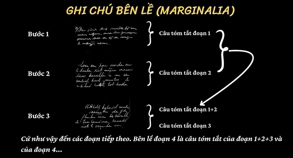 ➤ Viết lại ý chính hoặc câu tóm tắt sau mỗi đoạn ngay bên lề sách.