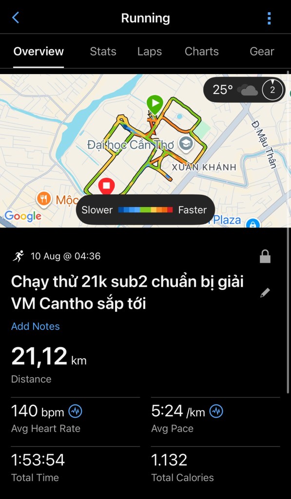 • 🌤 Nhiệt độ: ~25°C, điều kiện khá mát cho chạy dài