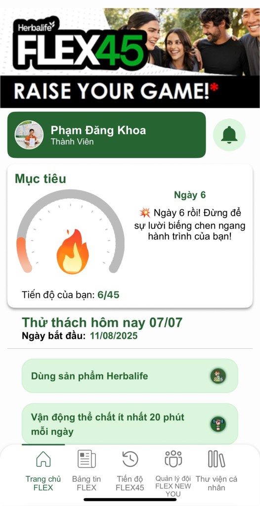 Đừng để sự lười biếng chen ngang hành trình của bạn, tham gia flex45 ngày 📆 cũng chính là thử thách cực khó của thói quen nguyên tử!
