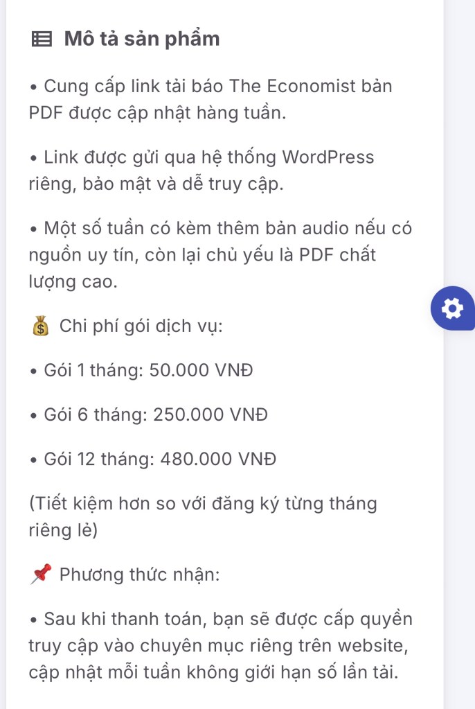 📚 Dịch vụ nhận báo The Economist hằng tuần – Bản PDF + Audio 🎧