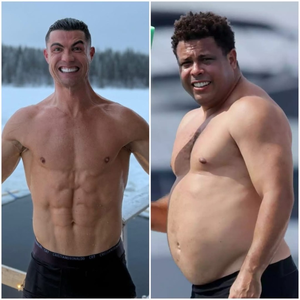 👉 Một bên vẫn giữ body “6 múi như đúc”, một bên lại thoải mái với chiếc bụng bia 🍺 “thương hiệu”.