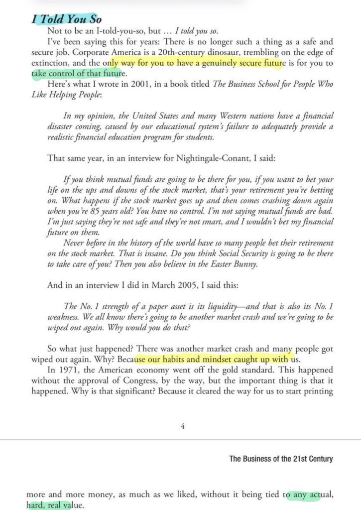 👉 Doanh nghiệp Mỹ 🇺🇸 giống như khủng long 🦖 thời công nghiệp – đang bên bờ tuyệt chủng. Cách duy nhất để có tương lai an toàn là tự nắm quyền kiểm soát. - Mutual funds, pensions, Social Security, Medicare – all are obsolete.