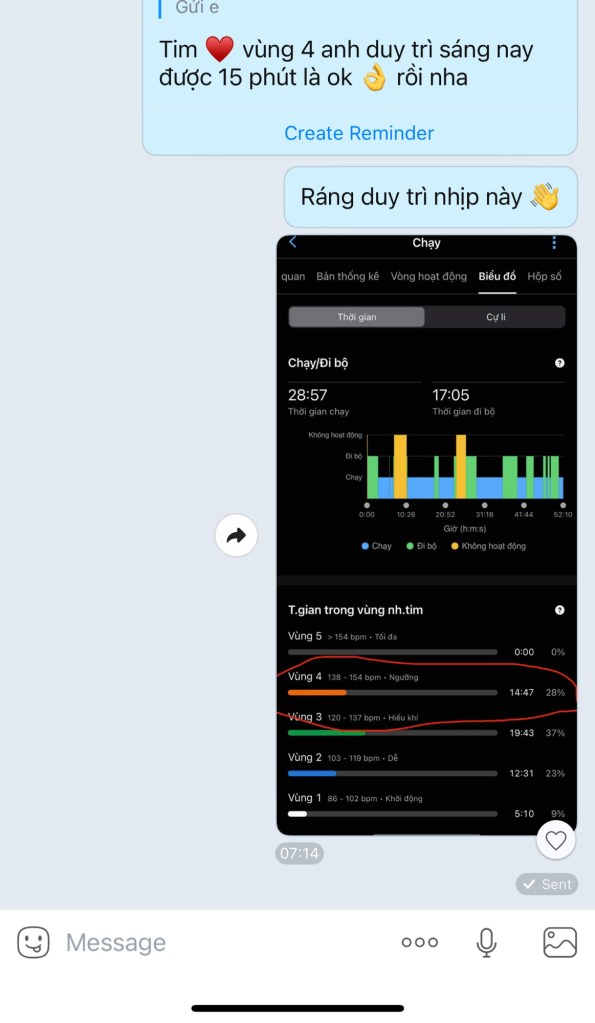 • “Tim ❤️ vùng 4 sáng nay duy trì được 15 phút là ok rồi nha” → học viên đã làm được.