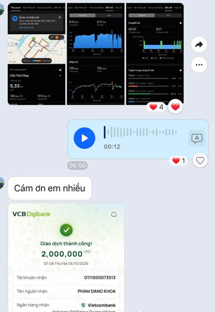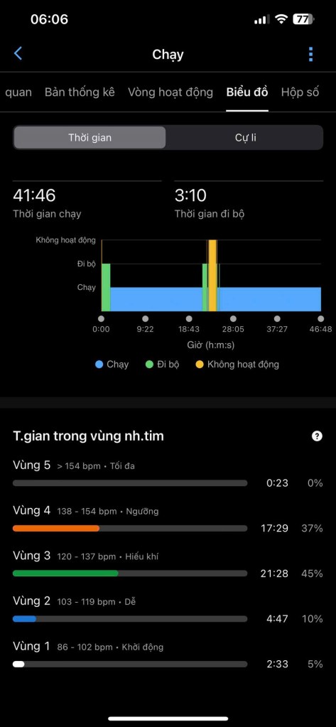 • Học viên (mỡ nội tạng = 14): cùng pace, cùng cự ly nhưng tim hoạt động chủ yếu ở vùng 3 & 4 (120–150 bpm), cho thấy cơ thể phải nỗ lực hơn nhiều — tuy vất vả hơn nhưng đốt mỡ hiệu quả hơn 🔥💪