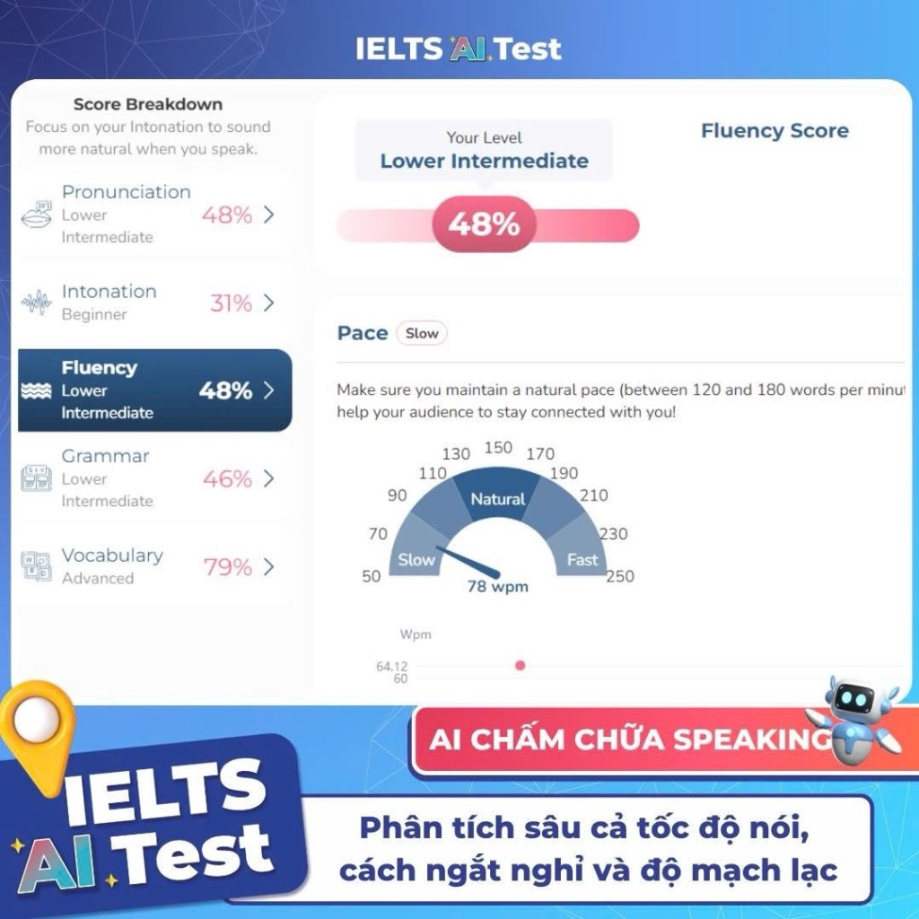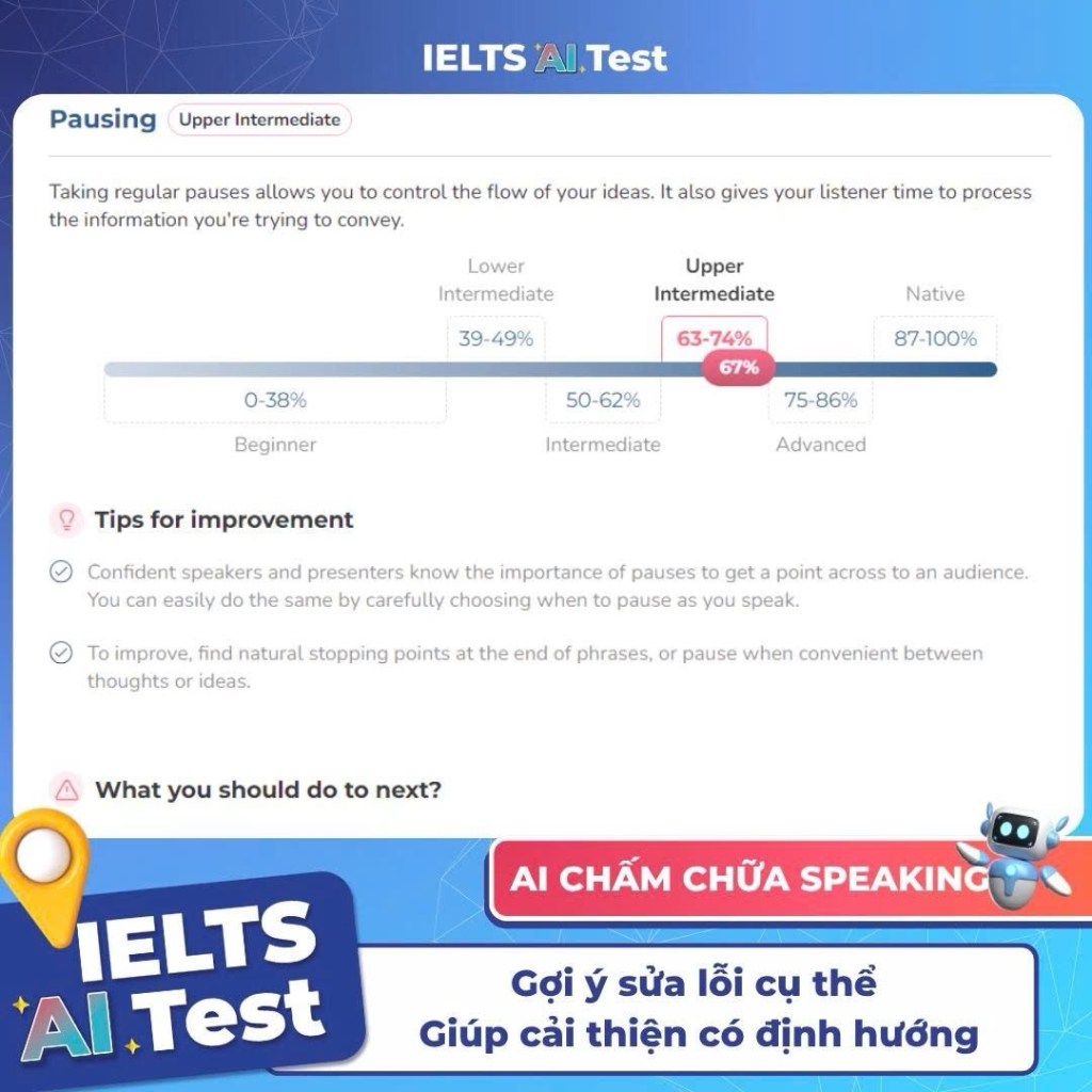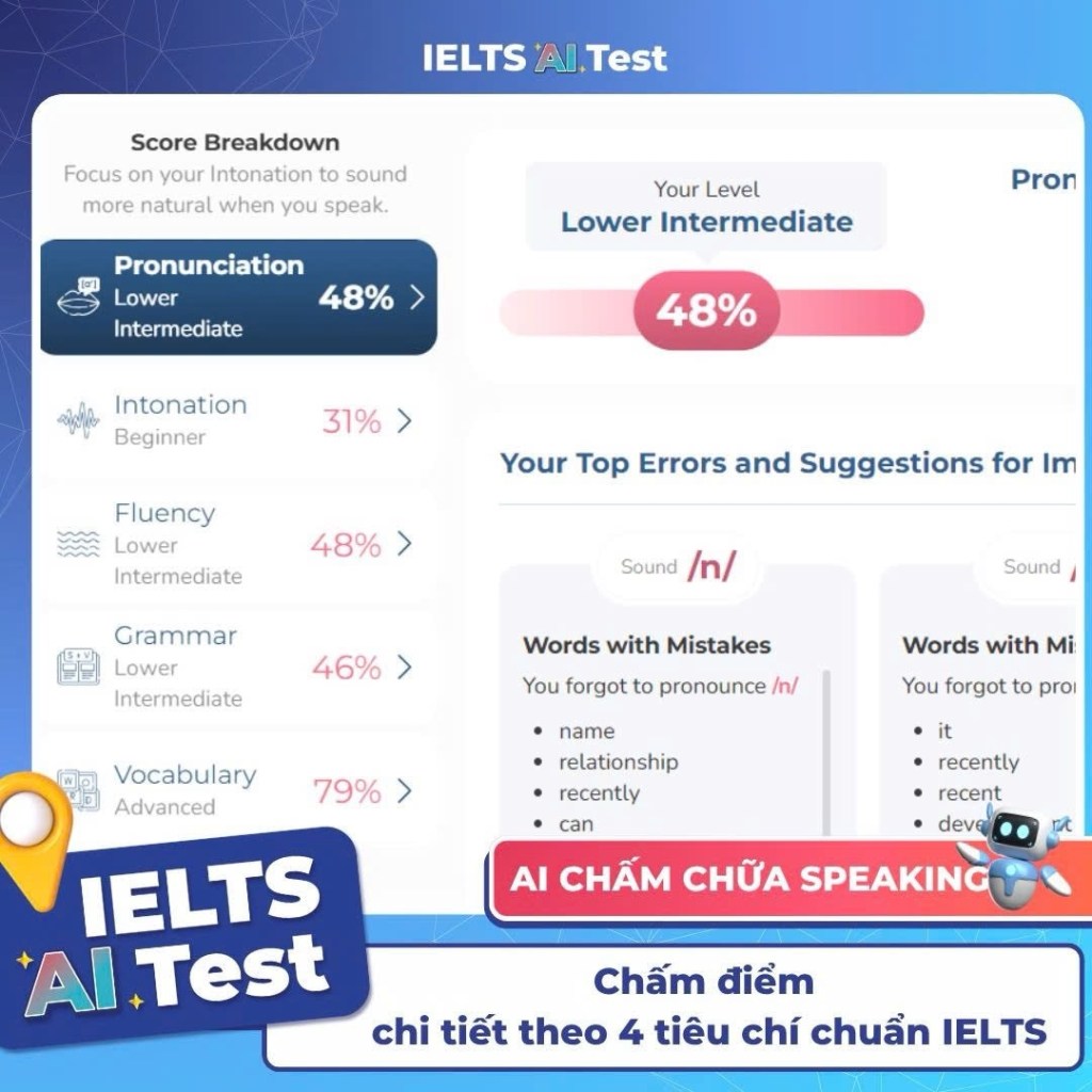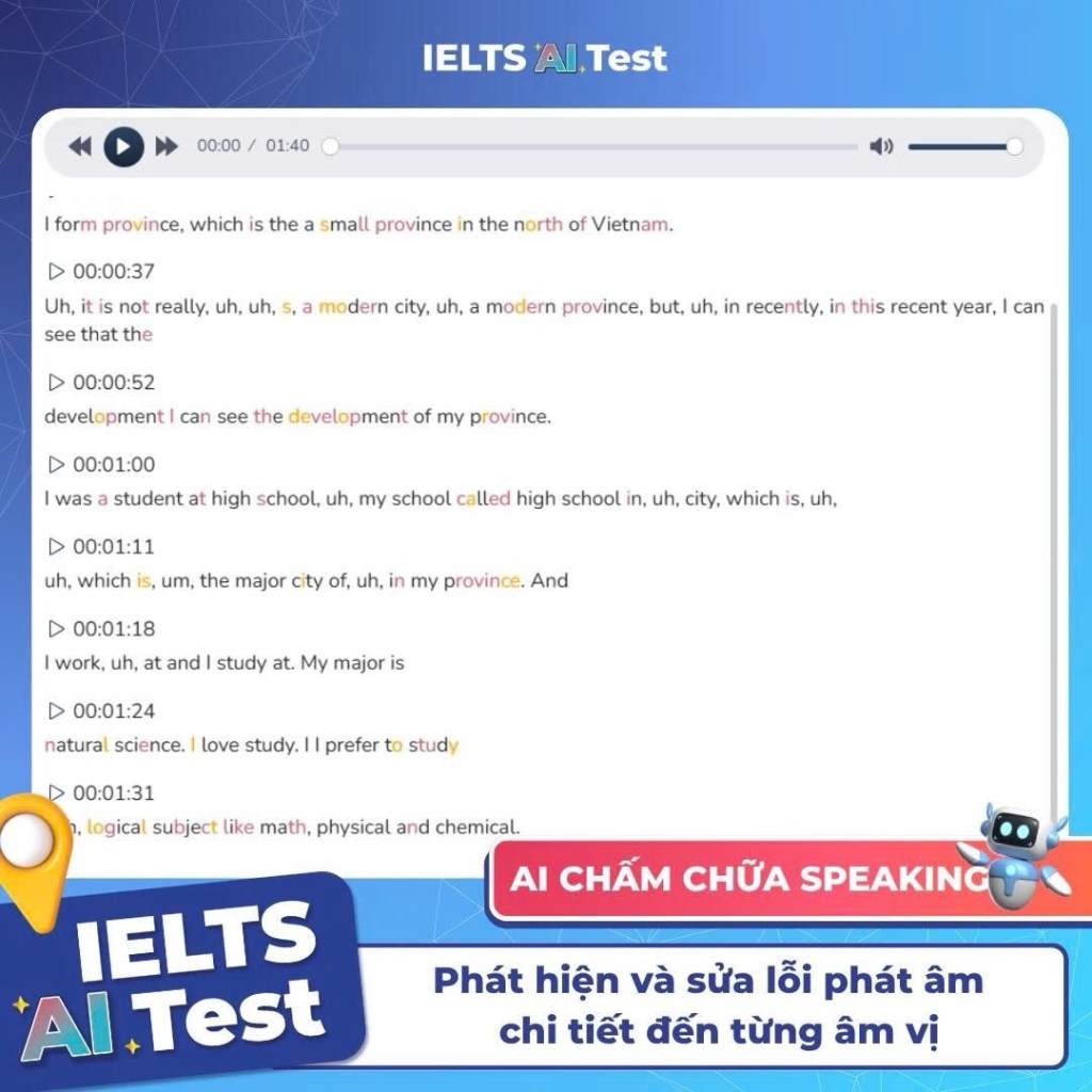 👉 IELTS AI Test mang đến công nghệ chấm Speaking tự động, mô phỏng 100% giám khảo thật.