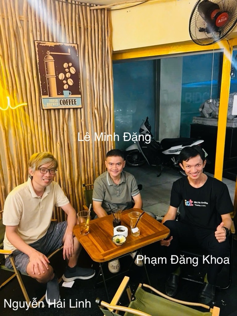Tối qua Khoa kéo được anh Lê Minh Đặng và anh Nguyễn Hải Linh ra một 1️⃣ cà phê ☕️ nhỏ ở quận 3 Tphcm – và đúng tinh thần Never Eat Alone luôn 🤣🔥