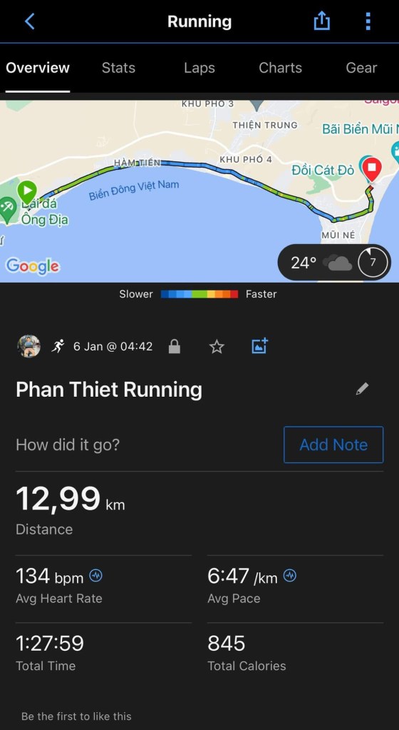 Chạy 13km từ Bãi đá Ông Địa tới Đồi Cát Đỏ Phan Thiết lúc rạng sáng